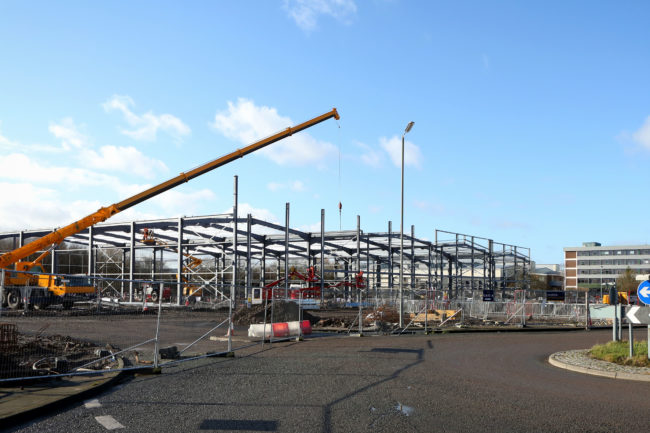 Steel structures for phase one of the scheme, which will transform Edge Lane Retail Park, are now visible.