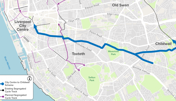Return to "City launches new cycle lane consultation" Cycle route Map of the proposed 8km cycle route from Childwall to Liverpool city centre