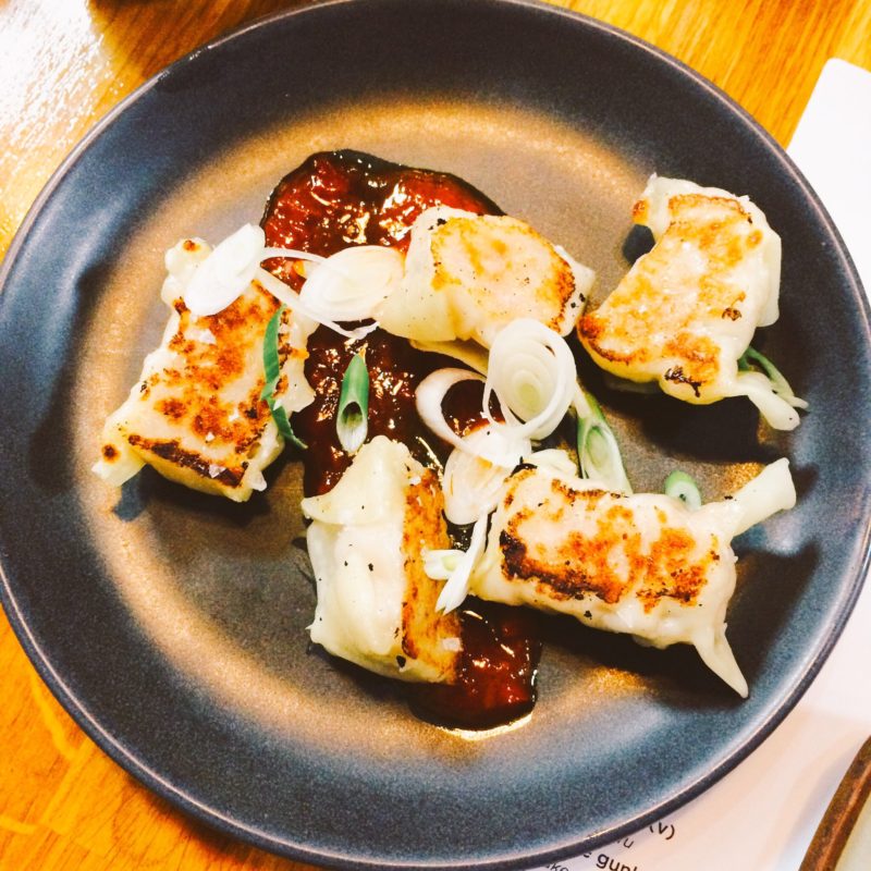 I plumped for my favourite sake aburi (torched salmon nigiri), and added maguru zuke (tuna) and teriyaki shitake hosomaki and aubergine dragon uramaki whilst Tony ordered the classic starter of chicken teriyaki and ever popular chicken katsu curry. We shared a portion of pork gyoza, because y’know, it’d just be rude not to.