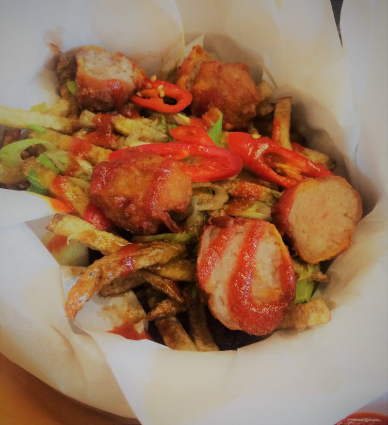 Fries, topped with sriracha, char sui, salt and pepper sui mai and a fruity Chinese curry sauce. These are fabulously fully-loaded fries and they are seriously, seriously good. I implore anybody who hasn’t had the Slim’s Pork Chop Express lo pan fries experience to put it to the top of their bucket list immediately.
