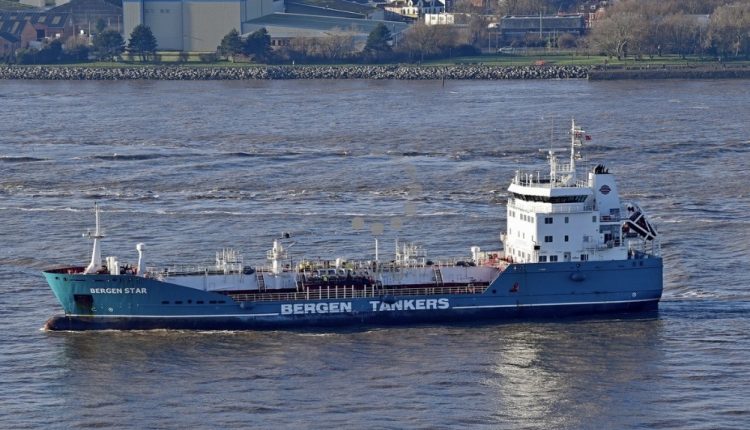 Return to "Ships on the Mersey and high and low tides on Friday, April 4" Bergen Star Bergen Star, a tanker on the Mersey. Picture by HowardLiverpool