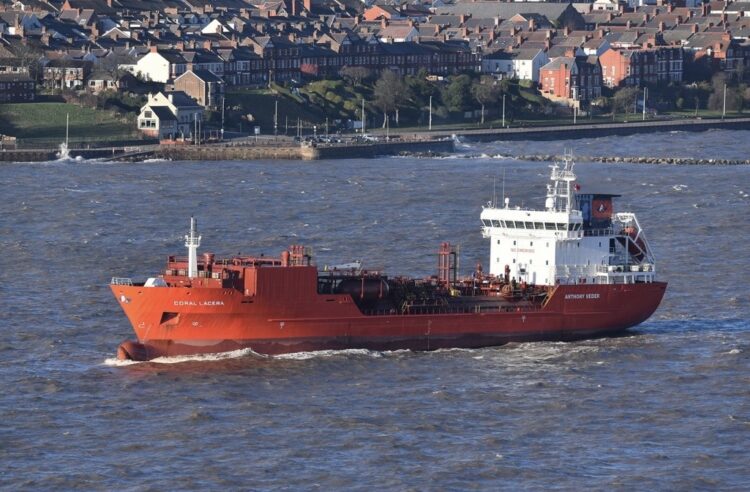 Coral Lacera, a tanker on the Mersey. Picture by HowardLiverpool