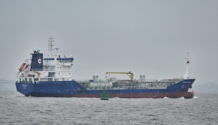Return to "Ships on the Mersey and high and low tides on Tuesday, November 7" Capewater Capewater, a tanker on the Mersey. Picture by Tony McDonough